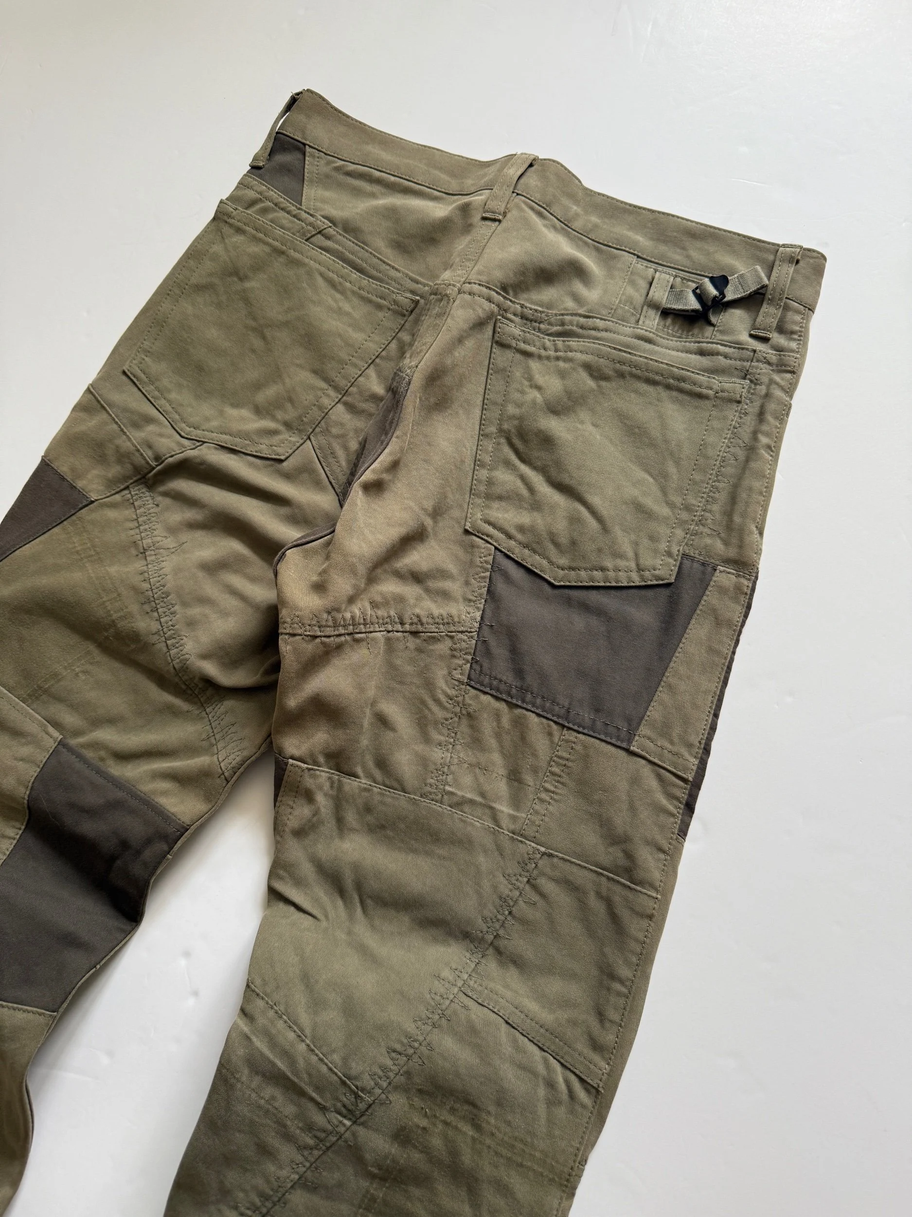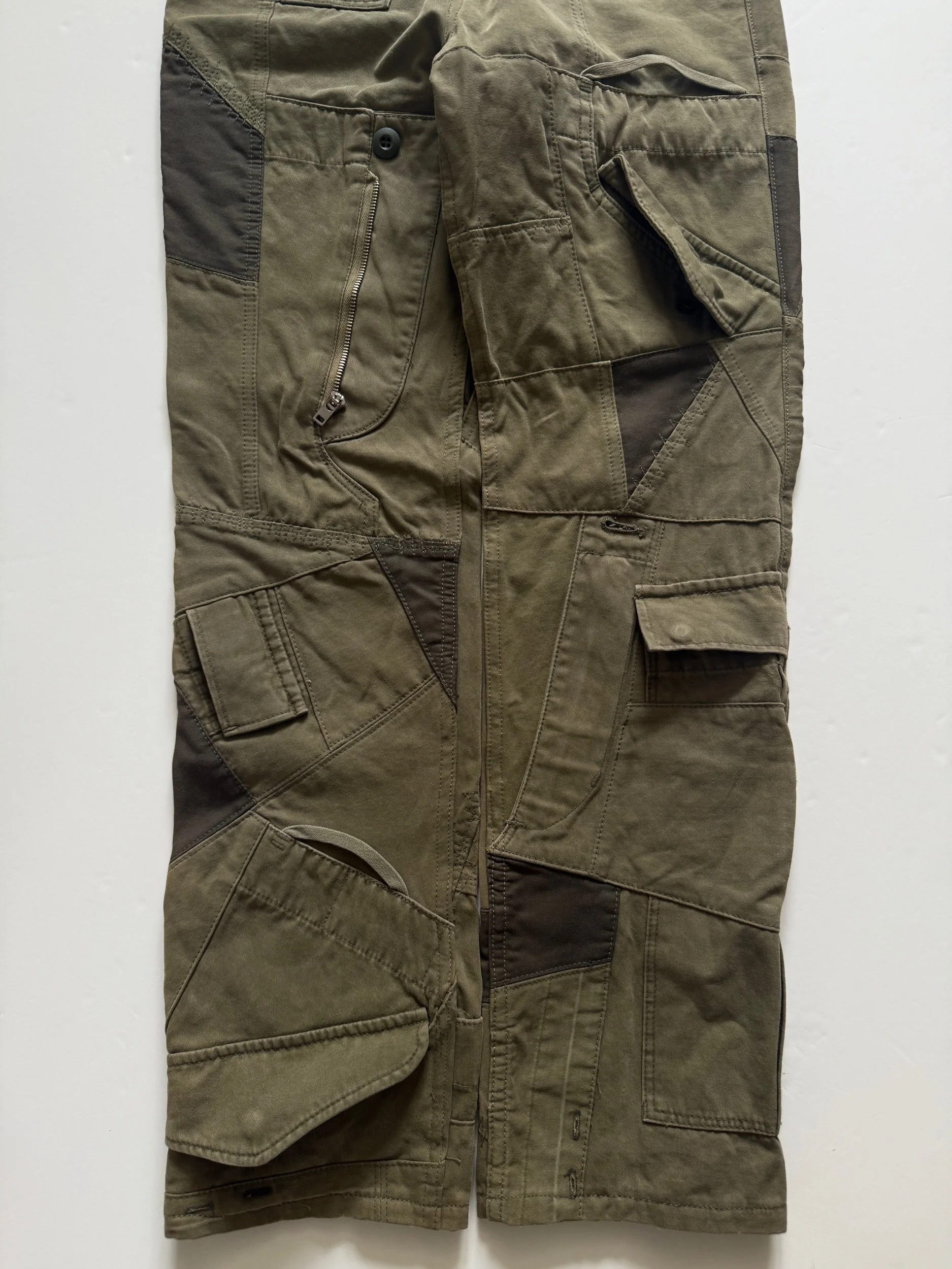 From 2006, is one of Junyas’ most recognized collections. Drawing inspiration from the film ‘Taxi driver’, the runway featured many obvious but also subtle referenced looks while debuting in Paris. A true mix of patchworked bottoms and jackets like this one here, with occasional loose knitwear and other military refs., very similar to the womens runway. These come in a sample size as seen on runway, and feature over 7 different pockets with details like adjustment straps and zippers.