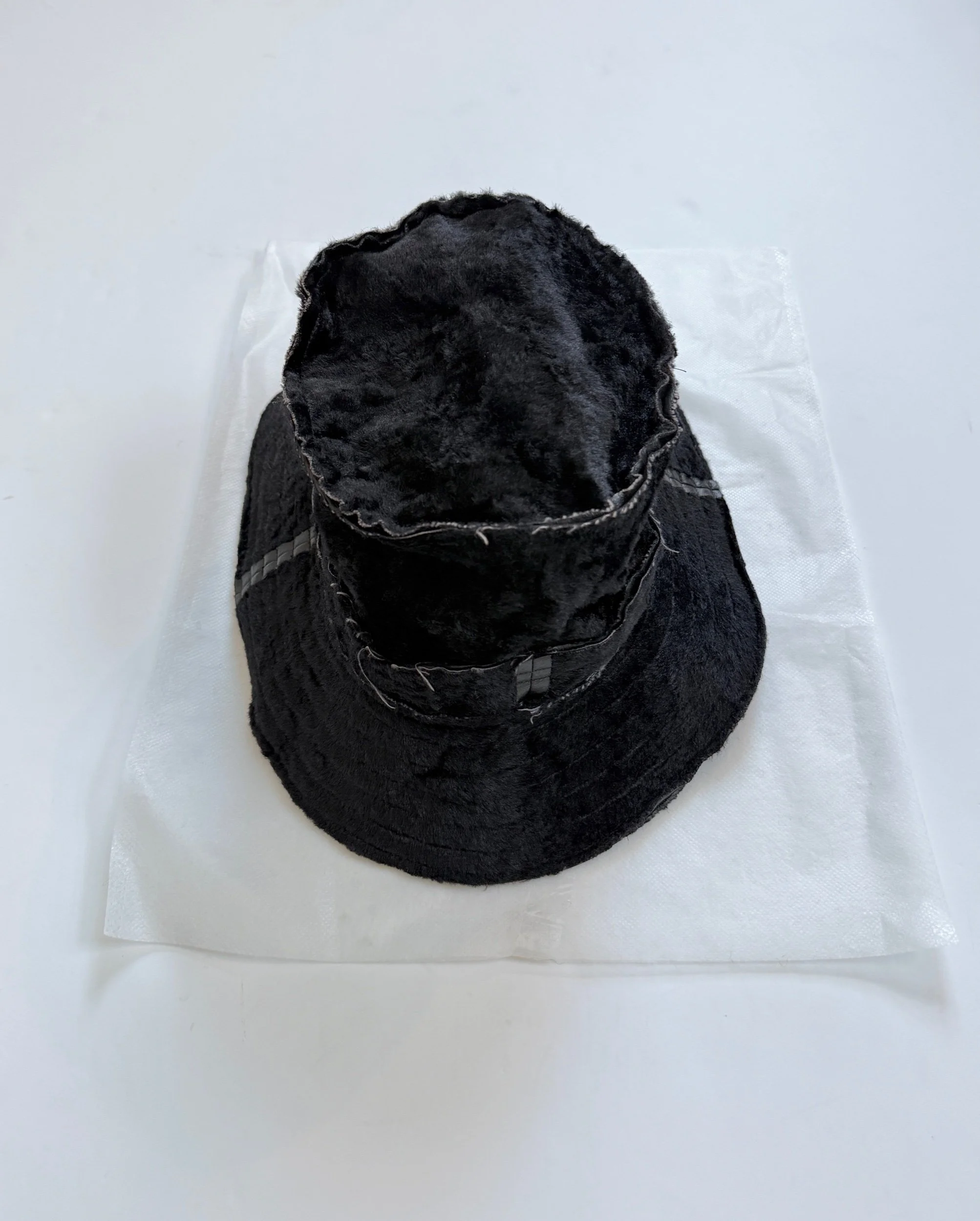 From Y’s line, is a late 90’s 100% wool all red knitted beanie with stretch and see through appeal. In great condition overall for age and hardly any pulls on the threads.